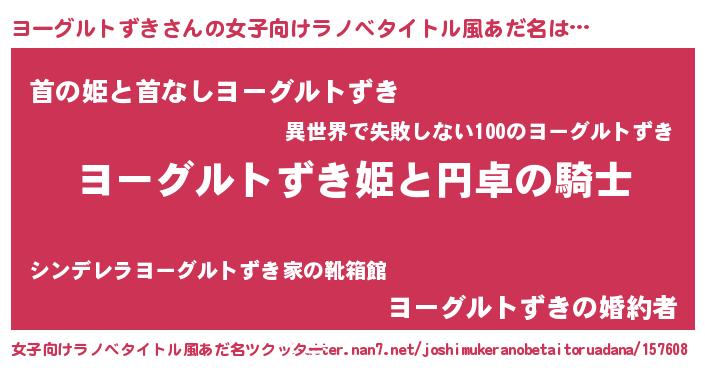 | 男性向けラノベタイトル風あだ名 | 『ヨーグルトずきの憂鬱』 |