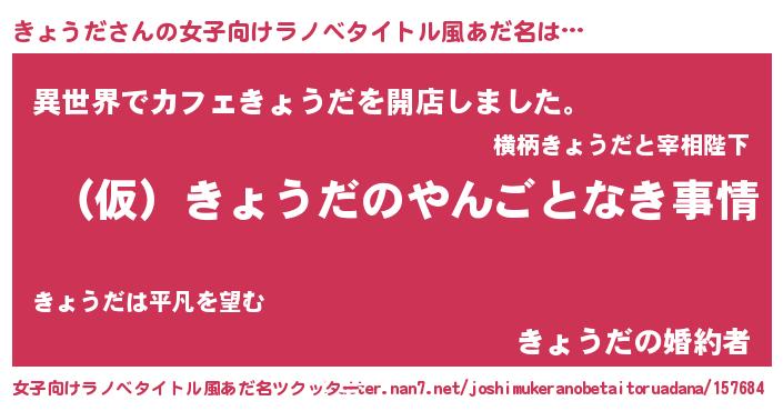 | 胡散臭い通販商品みたいなあだ名 | 『必ず成功する霊験あらたかなお札…その名も「きょうだ」』 |