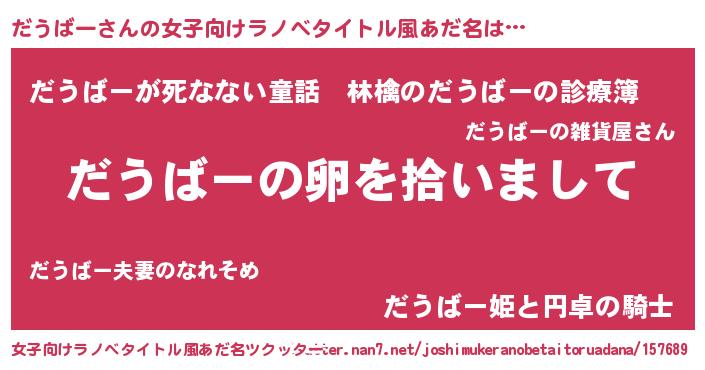 | 男性向けラノベタイトル風あだ名 | 『だうばーの嫁は女の子じゃないと思った?』 |