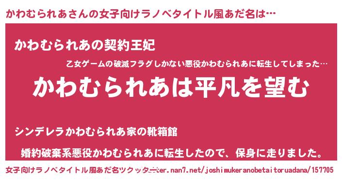 | 胡散臭い通販商品みたいなあだ名 | 『信頼と実績のサプリメント…その名も「かわむられあ」』 |