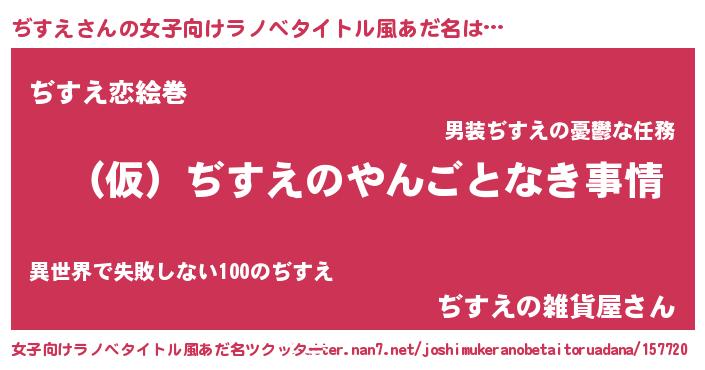| 男性向けラノベタイトル風あだ名 | 『ぢすえの憂鬱』 |