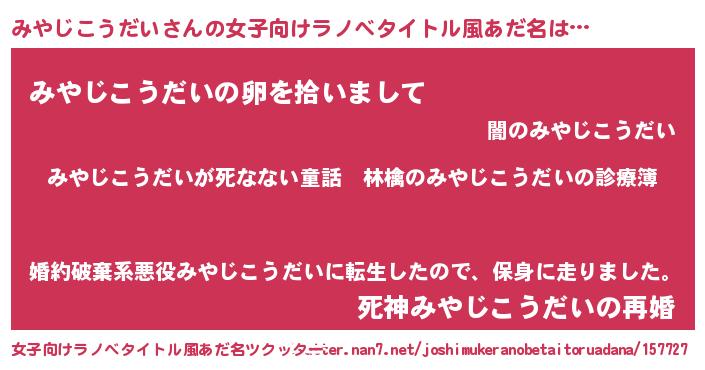 | 意味不明あだ名 | 『住所不定無職みやじこうだい(71歳)』 |