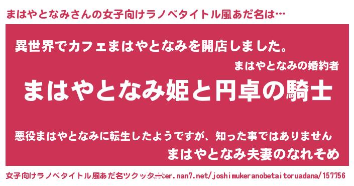 | 男性向けラノベタイトル風あだ名 | 『マハヤトナミアートオンライン』 |