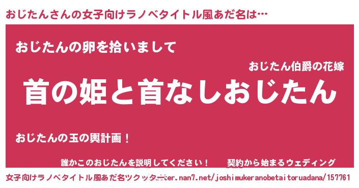 | 胡散臭い通販商品みたいなあだ名 | 『信頼と実績のサプリメント…その名も「おじたん」』 |