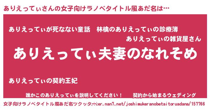 | 男性向けラノベタイトル風あだ名 | 『おまえをオタクにしてやるから、俺をありえってぃにしてくれ! 』 |