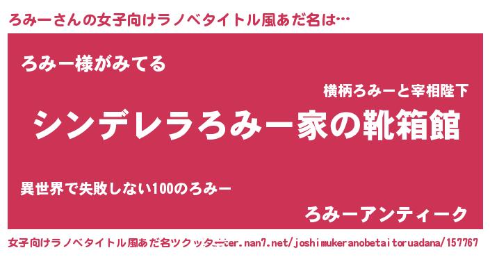 | 男性向けラノベタイトル風あだ名 | 『冴えないろみーの育てかた』 |