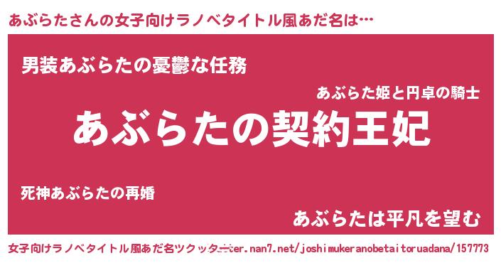 | 胡散臭い通販商品みたいなあだ名 | 『来世でも幸せになれる水素水…その名も「あぶらた」』 |