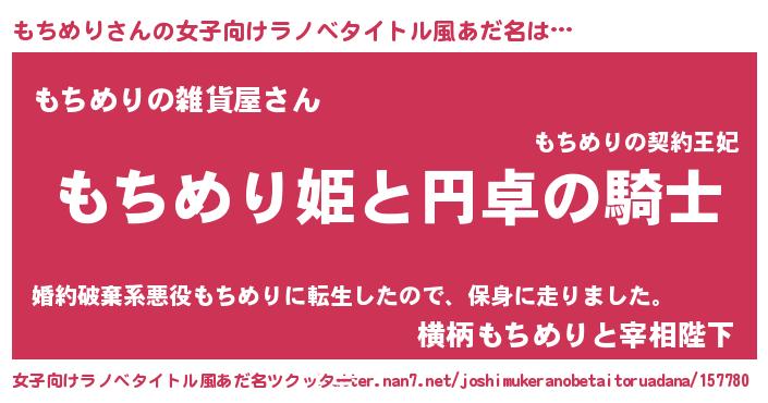 | ファンタジー風あだ名 | 『モチフェル』『エターナルモチメリー』 |