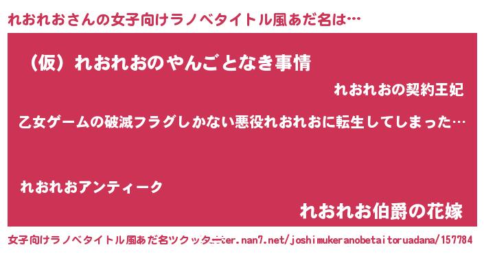 | 男性向けラノベタイトル風あだ名 | 『この素晴らしい世界にれおれおを!』 |