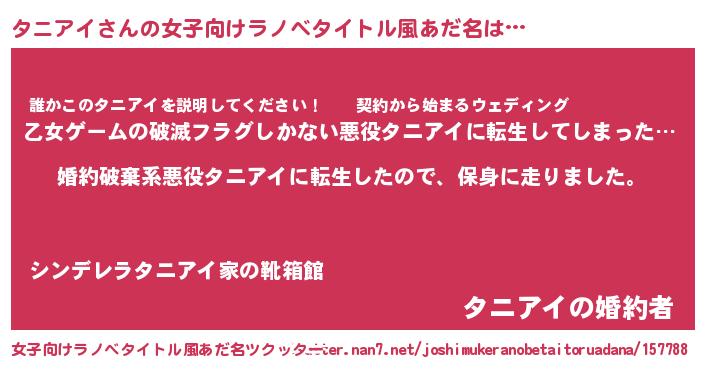| 男性向けラノベタイトル風あだ名 | 『タニアイスレイヤー』 |