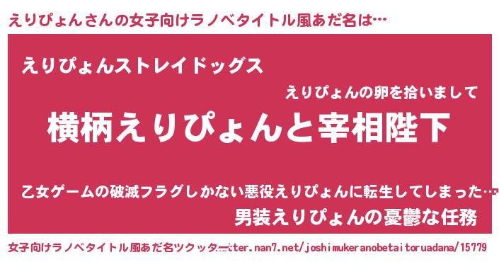 | 男性向けラノベタイトル風あだ名 | 『えりぴょんに滅ぼされるだけの簡単なお仕事です』 |