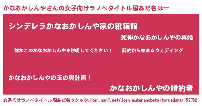 | 男性向けラノベタイトル風あだ名 | 『カナオカシンヤアートオンライン』 |
