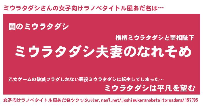 | 男性向けラノベタイトル風あだ名 | 『おまえをオタクにしてやるから、俺をミウラタダシにしてくれ! 』 |