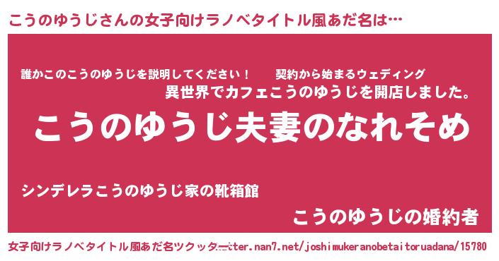 | 男性向けラノベタイトル風あだ名 | 『おまえをオタクにしてやるから、俺をこうのゆうじにしてくれ! 』 |