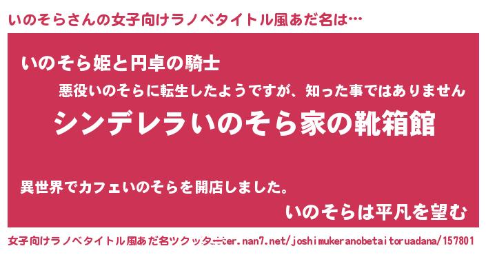 | 男性向けラノベタイトル風あだ名 | 『緋弾のイノソラ』『いのそらの憂鬱』 |
