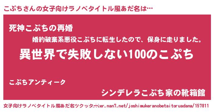 | 男性向けラノベタイトル風あだ名 | 『こぷちという概念が存在しない退屈な世界 』 |