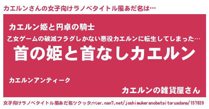 | 男性向けラノベタイトル風あだ名 | 『はたらくカエルンさま!』 |