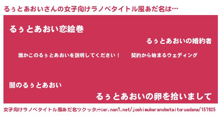 | 男性向けラノベタイトル風あだ名 | 『ルゥトアオイアートオンライン』 |