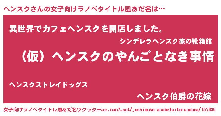 | 男性向けラノベタイトル風あだ名 | 『ヘンスクの憂鬱』 |