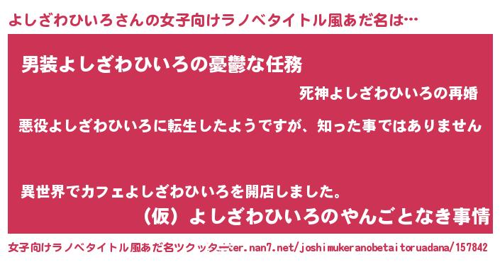 | 意味不明あだ名 | 『住所不定無職よしざわひいろ(7歳)』 |