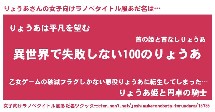 | ヒーロー風カッコイイあだ名 | 『ネオリョウア』『暗黒騎士リョ』 |