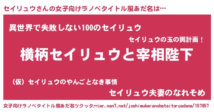 | 男性向けラノベタイトル風あだ名 | 『セイリュウに滅ぼされるだけの簡単なお仕事です』 |
