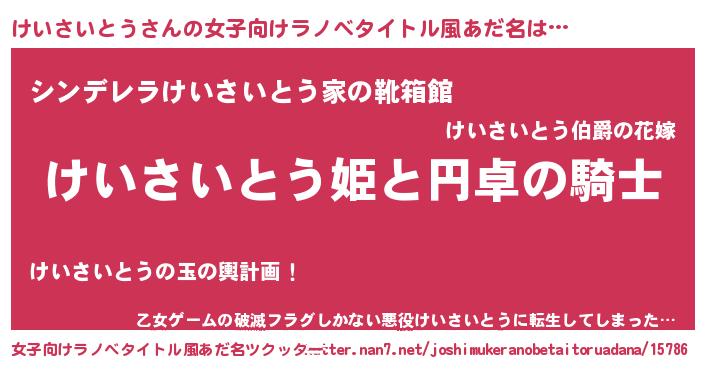 | 肩書あだ名 | 『けいさいとうCEO』『けいさいとう船長』 |