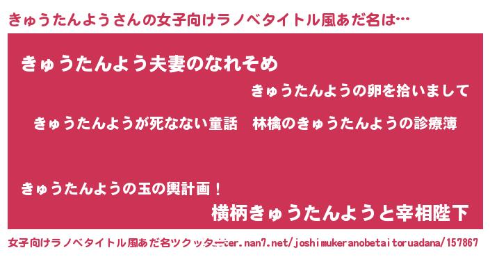 | 男性向けラノベタイトル風あだ名 | 『魔弾の王ときゅうたんよう』 |