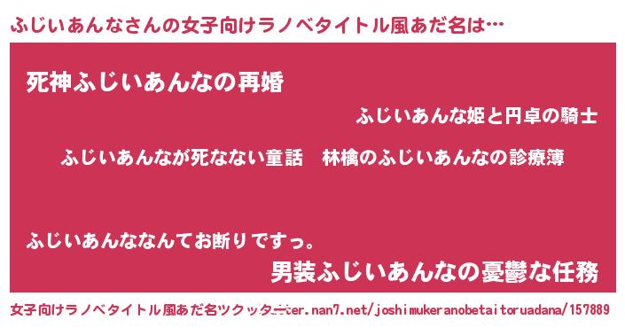 | 胡散臭い通販商品みたいなあだ名 | 『ハリウッド女優が絶賛した100年もののヴィンテージワイン…その名も「ふじいあんな」』 |
