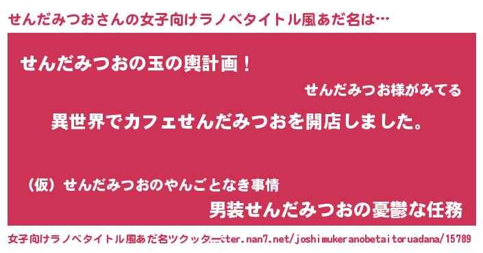 | 男性向けラノベタイトル風あだ名 | 『誰もが恐れるあのせんだみつおが、ぼくの専属メイドになるようです。』 |