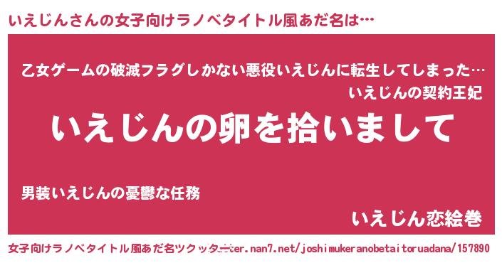 | 男性向けラノベタイトル風あだ名 | 『いえじんの嫁は女の子じゃないと思った?』 |