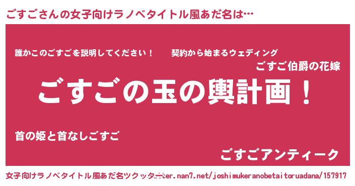 | 胡散臭い通販商品みたいなあだ名 | 『億万長者になれる水晶球…その名も「ごすご」』 |