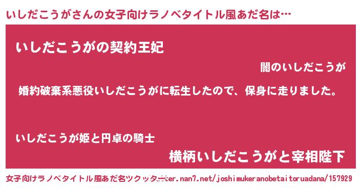 | 男性向けラノベタイトル風あだ名 | 『イシダコウガスレイヤー』 |