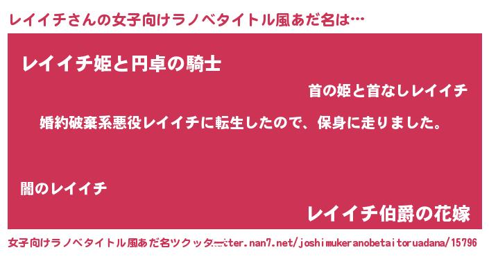| 意味不明あだ名 | 『なめこ科レイイチ属』『自称レイイチ』 |