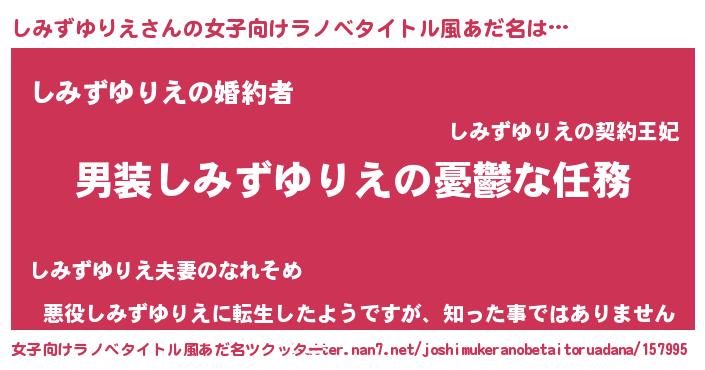 | ヘコむあだ名 | 『酢こんぶ』『しみずゆりえ(爆)』 |