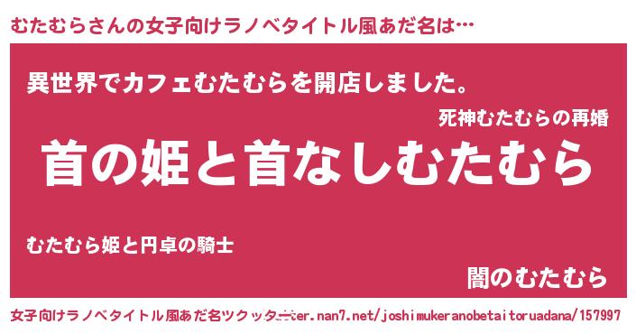 | 男性向けラノベタイトル風あだ名 | 『はたらくむたむらさま!』 |