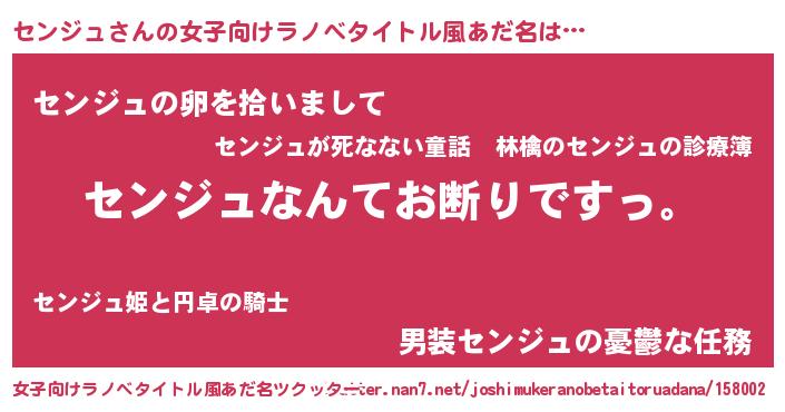 | ヒーロー風カッコイイあだ名 | 『超時空戦士センジュ』『幻影騎士セン』 |