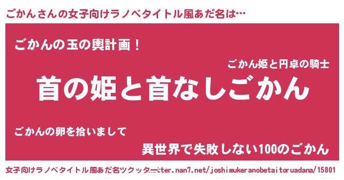| 胡散臭い通販商品みたいなあだ名 | 『絶対に幸福をもたらす水素水…その名も「ごかん」』 |