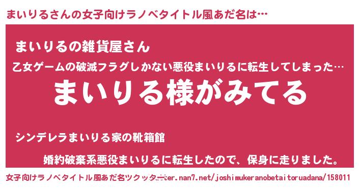 | ヒーロー風カッコイイあだ名 | 『天弓騎士マイ』『ウルトラまいりるマン』 |