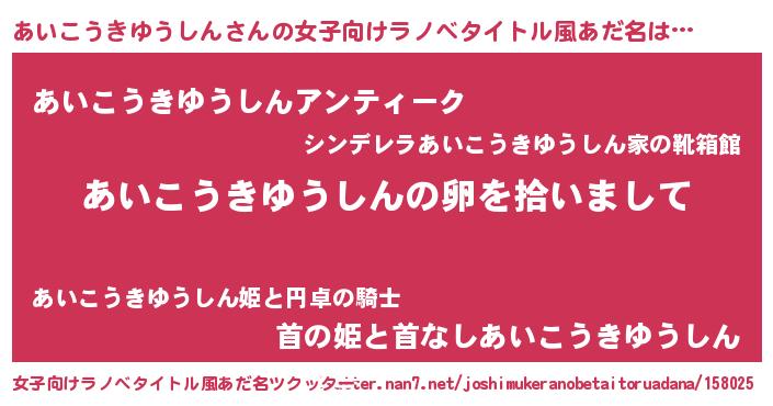 | 胡散臭い通販商品みたいなあだ名 | 『伝統あるサプリメント…その名も「あいこうきゆうしん」』 |