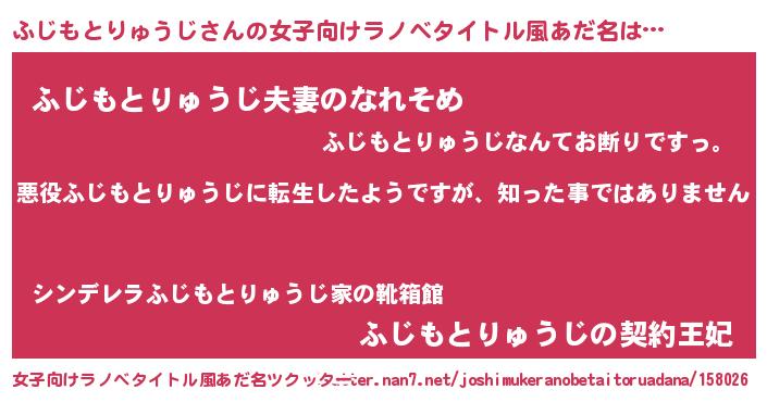 | 男性向けラノベタイトル風あだ名 | 『この素晴らしい世界にふじもとりゅうじを!』 |