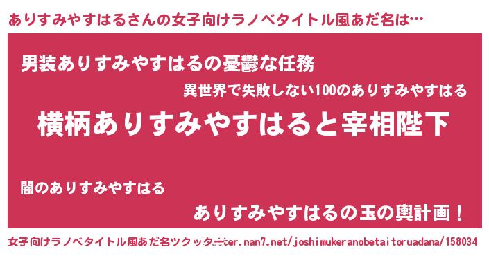 | ヘコむあだ名 | 『ありすみやすはる(遠い目)』『ありっちょ』 |