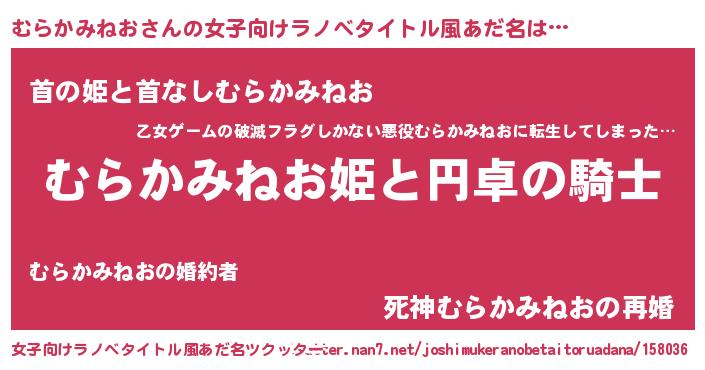 | 男性向けラノベタイトル風あだ名 | 『むらかみねおの憂鬱』 |