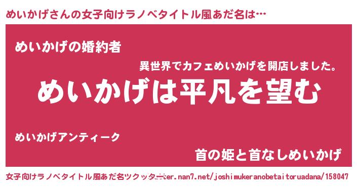 | 意味不明あだ名 | 『とにかく怪しいめいかげ』 |