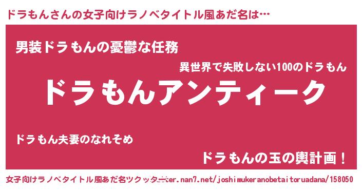 | 胡散臭い通販商品みたいなあだ名 | 『テレビで話題の高麗人参…その名も「ドラもん」』 |