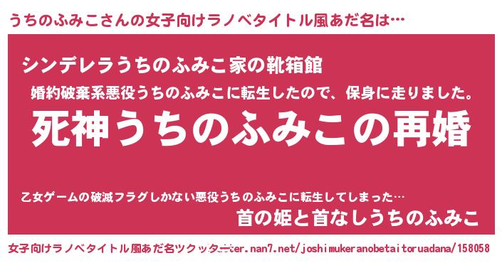 | 伝説のあだ名 | 『救世主となる錬金術士うちのふみこ』 |