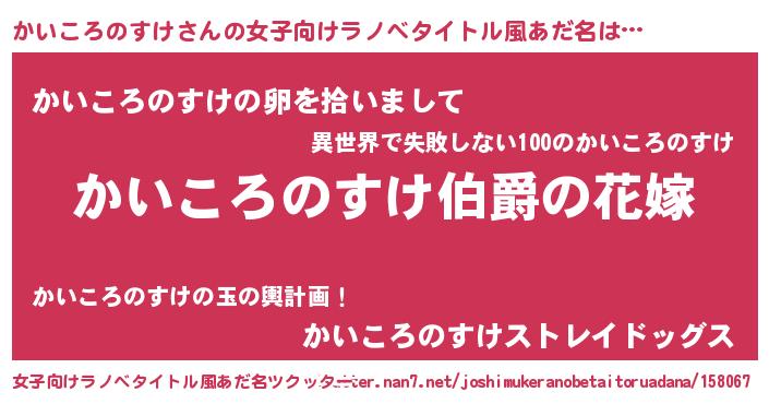 | 男性向けラノベタイトル風あだ名 | 『やはりかいころのすけの青春ラブコメはまちがっている 』 |