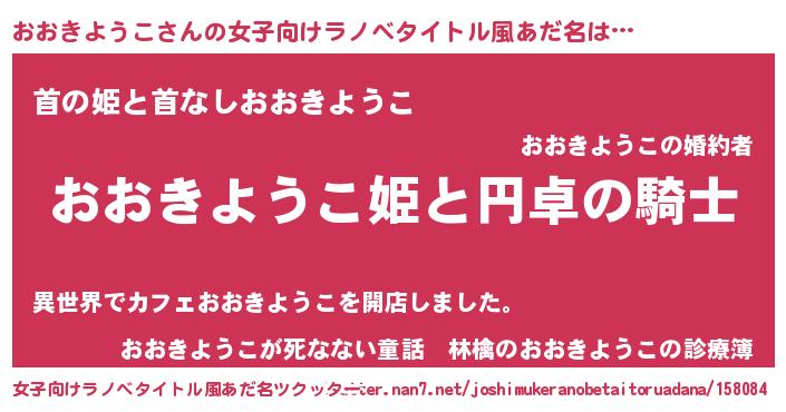 | 男性向けラノベタイトル風あだ名 | 『オオキヨウコアートオンライン』 |