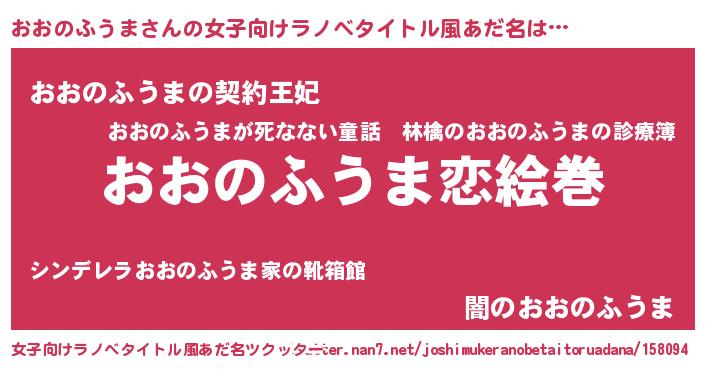 | 男性向けラノベタイトル風あだ名 | 『ノーゲーム・ノーオオノフウマ』 |