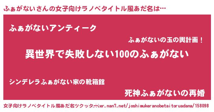 | 男性向けラノベタイトル風あだ名 | 『ふぁがないという概念が存在しない退屈な世界 』 |
